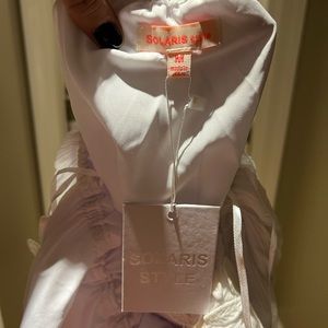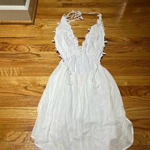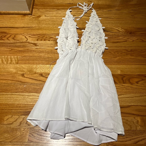 WHITE HALTER DRESS WITH FLOWERS ! BACKLESS !