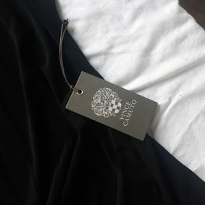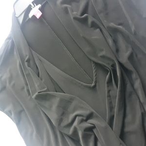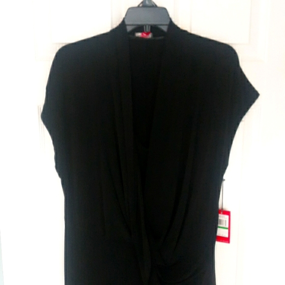 Black drape neck line..asymmetrical hem dress..Polyester..unlined