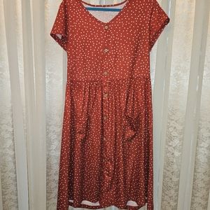 XL Burnt Orange Orange dress that goes above the ankle, buttons all the way down and 2 pockets