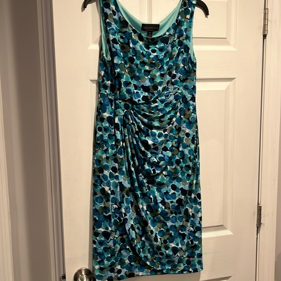 Beautiful faux wrap dress shirred at the side waist