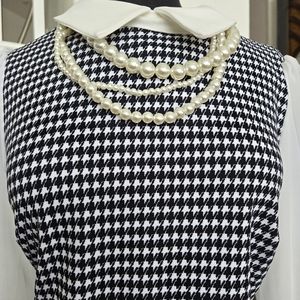 Houndstooth dress with long shear sleeves. Dress comes with attached pearls. Dress is new with tags.