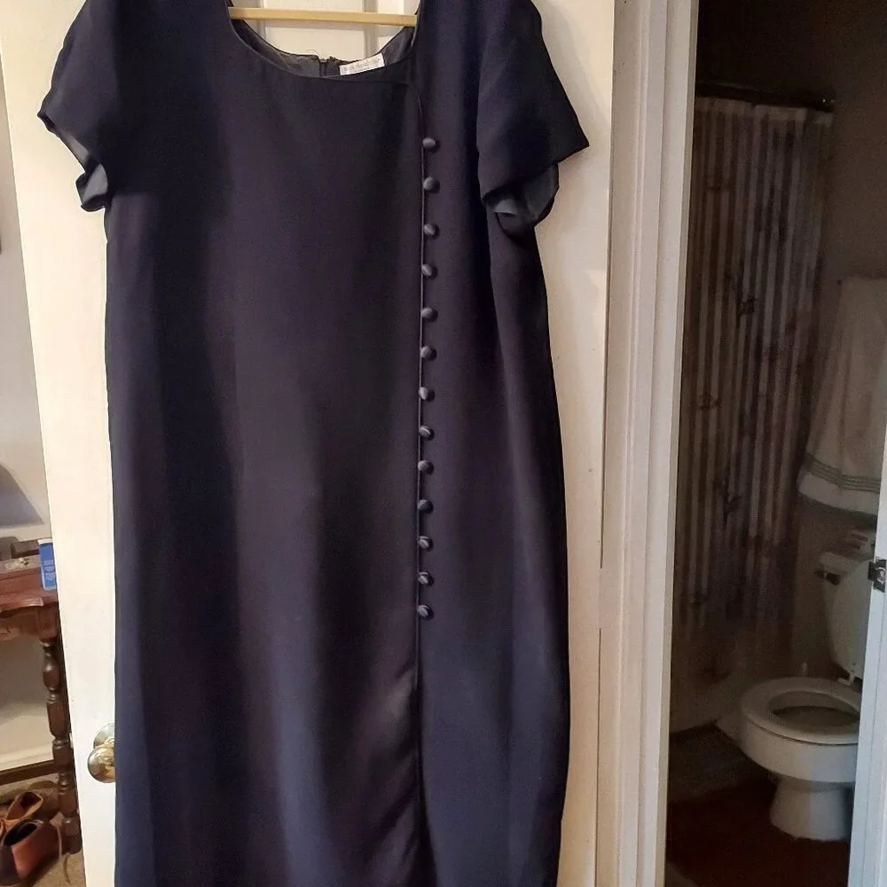 Mid length dress. Nice button Accents and off center front slit.
