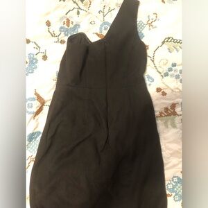 GORGEOUS BLACK ONE SHOULDER DRESS WORN ONCE!!!! Ruching in front, very flattering!!!! Slit in front! I can’t really get a great pic of it and these pics don’t do it justice!!! MIDI T LENGTH 🖤🖤