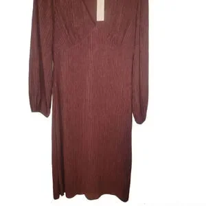 New size large purple dress. 15-19 in pit to pit. 44 in long. 24.5 in sleeves. Polyester material.