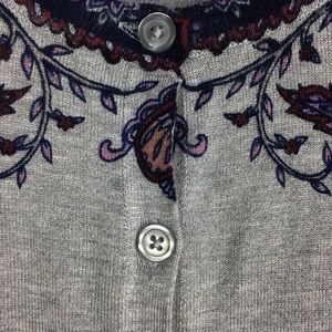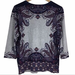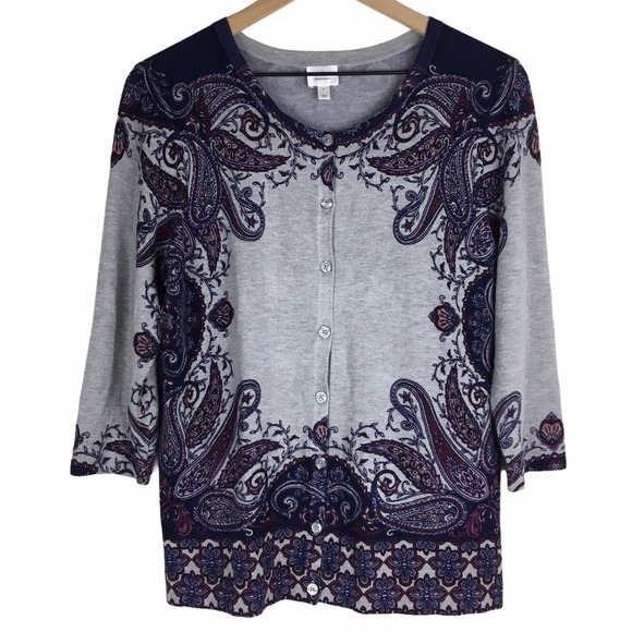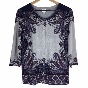 DRESS BARN Cardigan Sweater Paisley Floral 3/4 Sleeves Grey Purple Size Large