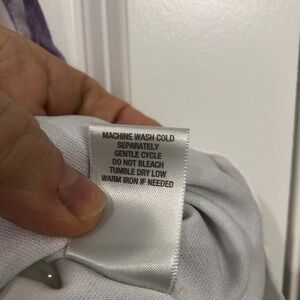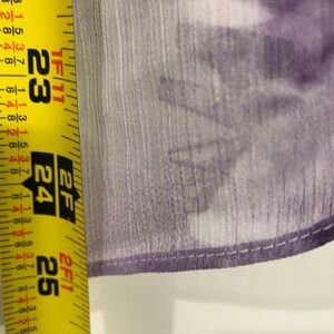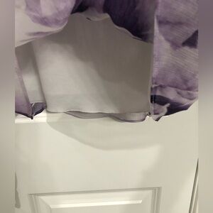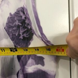Dress Barn Size M lavender floral blouse, sheer with lining layer underneath. 25” long, pit to pit is 16” but stretches to 20”