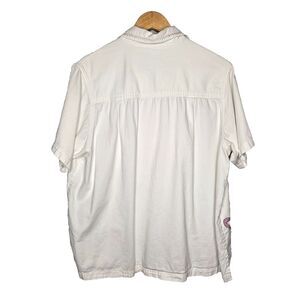 DRESS BARN Vtg Shirt Womens 1X White Applique Cats Short Sleeves Button Up