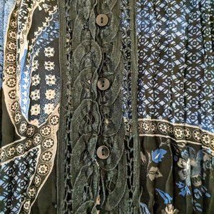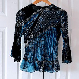 DRESS BARN Women's Accordion Crinkle Blouse Size S Blue & Black NWOT