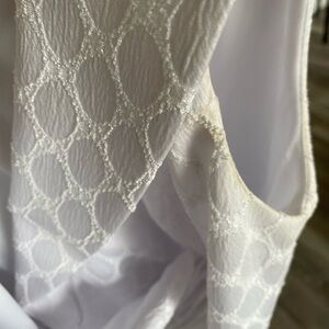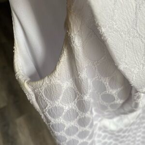 Elegant, white dress, formal, cocktail party, church event, textured, classy