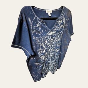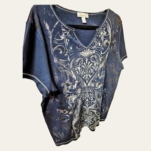 DRESS BARNβWomen's Plus Size Blue Short Sleeve Swirl heart design top.