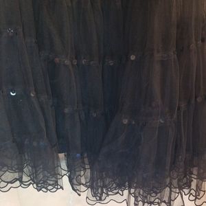 This is a Ventage dress By Jon .Very beautiful crinoline with three rows of sequins that add that just right amount of eye catching glitter. Could be a Prom or with the right look a lil Gothic . It has tags from a clothing shop on Hilton Head SC. It's in a size 4