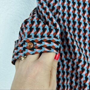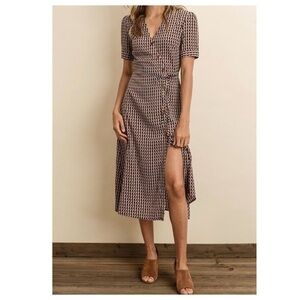 DRESS FORUM Geometric Midi Wrap Dress, Asymmetrical Buttons, Size Small, NWOT!