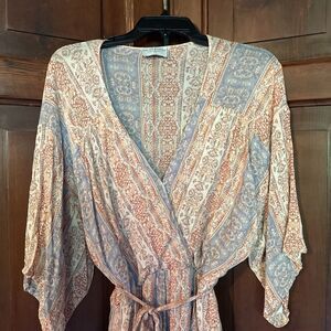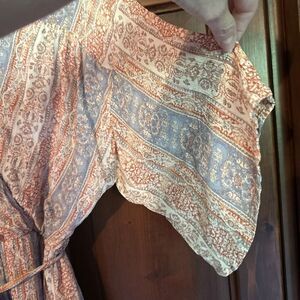 The product is a Dress Forum romper in a loose fit size large, designed for women. This one-piece outfit features a V-neckline, short sleeves, and a button closure. The romper comes in a multicolor option, making it a versatile and stylish choice for various occasions. Perfect for women looking for a comfortable and trendy clothing option.