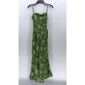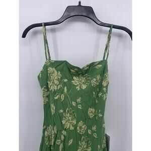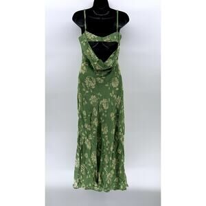 DRESS FORUM Women's Green Floral Straight-Neck Spaghetti Strap Cutout Back Midi Dress SZ S