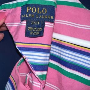 💥Ralph Lauren stripped dress, rounded neckline, button half placket w/a cut out in the back, fully lined, does NOT include bloomer- 2T