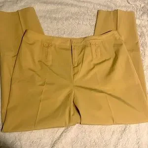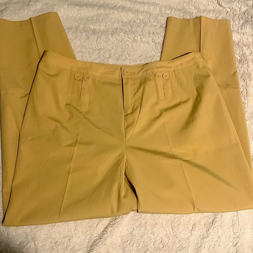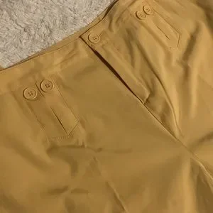 MUSTARD YELLOW GOLDEN DRESS PANTS EXCELLENT CONDITION LIKE NEW BUTTON ACCENTS VERY NICE BUSSINESS PROFESSIONAL DRESS CASUAL OR DAY TO DAY SIZE 14