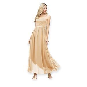 DRESS TALES Sweetheart Chiffon Aline Dress in Champagne Size Small NEW