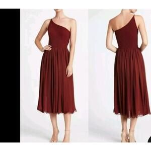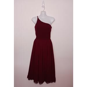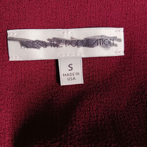 DRESS THE POPULATION ASYMMETRICAL BURGUNDY MIDI DRESS , size S