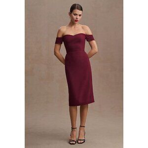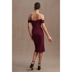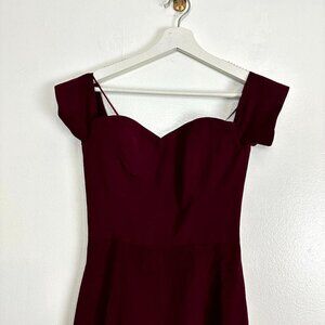 DRESS THE POPULATION Bailey Off the Shoulder Body-Con Dress in Burgundy X-Small