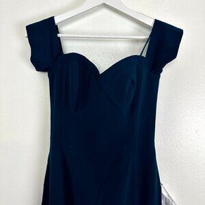 DRESS THE POPULATION Bailey Off the Shoulder Body-Con Dress in Peacock Blue