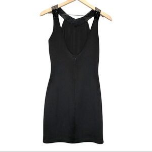 DRESS THE POPULATION Beaded Colorblock Neck Sleeveless Open Back Mini Dress S