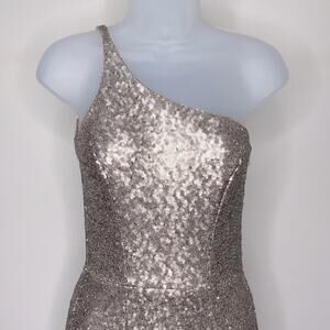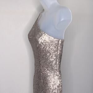 DRESS THE POPULATION Bella Ice Pink Gold Sequin One Shoulder Gown Womens Size XS
