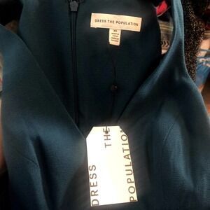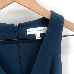 DRESS THE POPULATION Catalina Peacock Blue Fit & Flare Cocktail Dress XS NEW