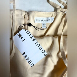 DRESS THE POPULATION Cream sequin KADY w/black tulle skirt cocktail dress size L