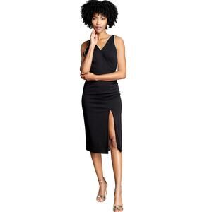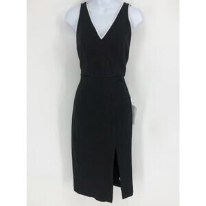 DRESS THE POPULATION Giana Dress Small Black White Slit V Neck Bodycon NWOT