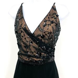 DRESS THE POPULATION Giulia Sequin Bodice Sheath Midi Dress Small Black/Tan NWOT