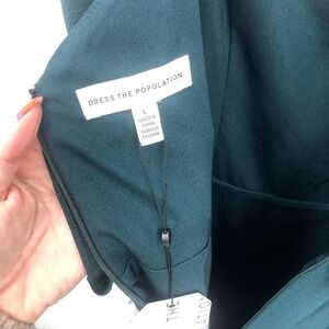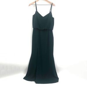 DRESS THE POPULATION Gracelyn Pine Blouson High Slit Maxi Dress Size Large NEW