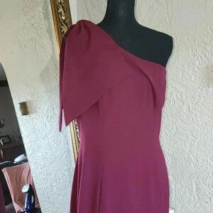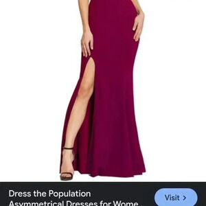 size L one shoulder dress 👗 nwot ⁰Product Details Drape yourself in old world glamour with this dress from Dress the Population. Featured with a draped bow at the shoulder and finished with a charming slit at the front. Bow detail at shoulder; slit at front Lined Zipper at the side One shoulder asymmetrical neckline Imported Web ID: 13827370