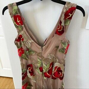 DRESS THE POPULATION Maya Embroidered Mesh Fit & Flare Dress in Nude and Red
