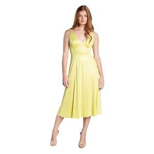DRESS THE POPULATION NWT $180 Serafina Fit & Flare Midi Dress Lemongrass
