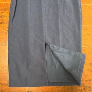 Midi form fitting sheath dress with a structured bodice. Fully lined. Excellent pre-owned condition, no flaws.