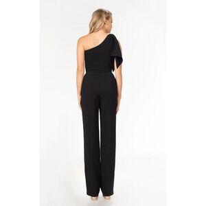 The Tiffany jumpsuit is classy with a touch of flair thanks to the asymmetrical one-shoulder neckline. The top portion hugs your figure while the wide legs create a flattering finish. The black color looks great on any body type and the jumpsuit also has pockets. stretch crepe and line.
