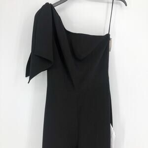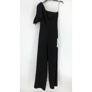 DRESS THE POPULATION Tiffany Jumpsuit Small Black One Shoulder Bow Wide Leg NWT