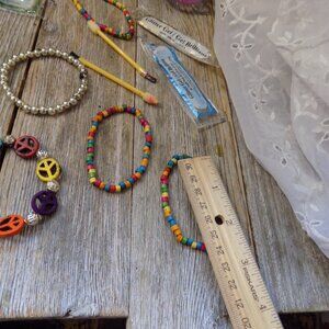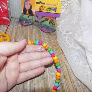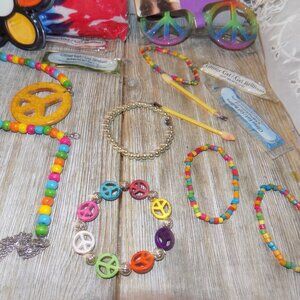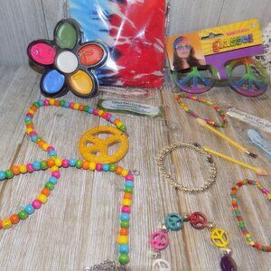 ITEM : This is a DRESS UP COSTUME FACE PAINT PEACE GROUP, THE NECKLACE I AM NOT SURE HOW IT GOES OR IF IT IS BROKEN. Cute Bracelets, Face Paint, Glitter, Its all used. Some not open.. Face Paint has not been Used.