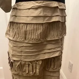 Amazing fitted dress--that will make a head turning statement. Khaki and black makes for a great combo in this mid-length dress.