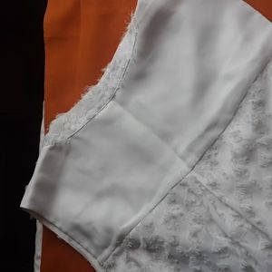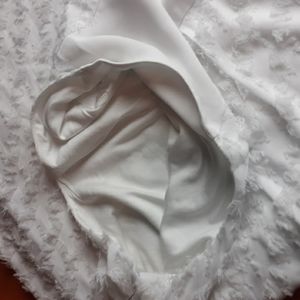 with eyelash embellishment flair. Mix Poly ..T shirt cotton lining.. Super Cute. I'm 5'8 and it comes above my knee