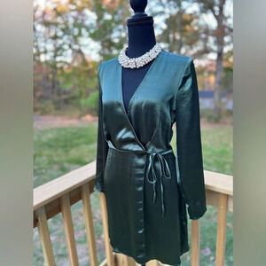DRESS wrap IN HIGH SHINE SATIN-GREEN size S mini dress