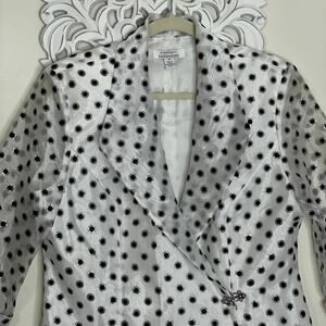 DRESSBARN COLLECTION size 12 Blazer Collared Jacket Rhinestone Clasp WHITE BLACK