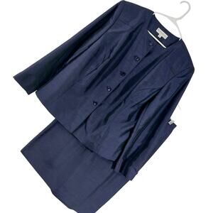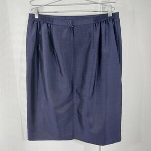 What a knock-out suit, set from DressBarn! In a gorgeous periwinkle blue/purple, it has the look of raw satin, but in easy care poly! The jacket, blazer, features a five button front and deconstructed, relaxed style! Shoulder pads, fully lined in matching poly satin! The skirt, also fully lined, has a back zipper and is a straight, pencil style! It includes elastic waist insets, as well! A beautiful, classic suit! Size 16W, Excellent! Superb EUC Condition! **ABSOLUTELY GUARANTEED CONDITION: EUC MINTY-EXCELLENT TO LIKE-NEW, by Lily @HauteClub!***