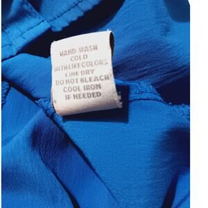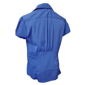 DRESSBARN Retro Gathered Blouse Top Medium Yoke Royal Blue Feminine V-Neck