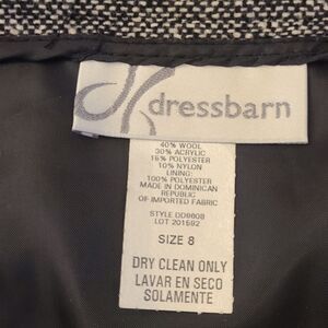 Unique, almost classic skirt, both A Line and pleated. Beautiful, substantial black and white wool polyester tweed, full lined in black satinesque. Beautifully at home in the office or a busineas casual event, but also cute at a party, a xhurch servicw or a family event!