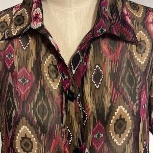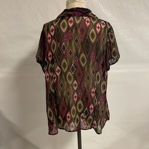 Women’s sheer patterned button up blouse from Dressbarn Woman Size 18/20. Excellent condition.