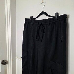 - Elastic waist with drawstring + belt loops