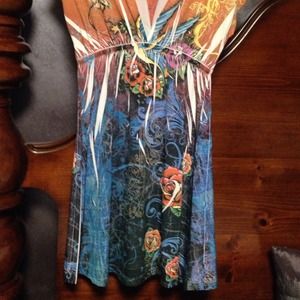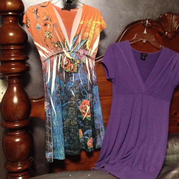 DRESS BUNDLE!!! Can be sold separately or as a bundle!! These dresses are great additives to anyone's closets!! Dress the purple one up or down!!! And get that edgy look with this Ed Hardy style looking dress!! PURPLE DRESS SEPARATE PRICE: $9 ED HARDY LOOK-A-LIKE SEPARATE PRICE: $11 **BOTH DRESSES ARE MEDIUMS**