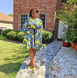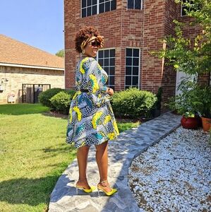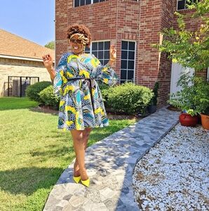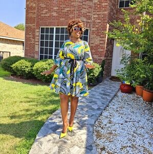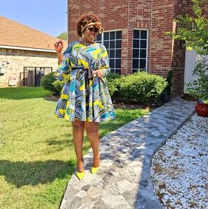 African print dress length 38inch and belt with two side pockets shipping from Texas to everywhere 817 609-1504