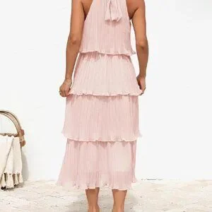 ZESICA Women's 2025 Summer Sleeveless Halter Neck Ruffle Tiered Layed Chiffon Flowy Swing Long Midi Dress